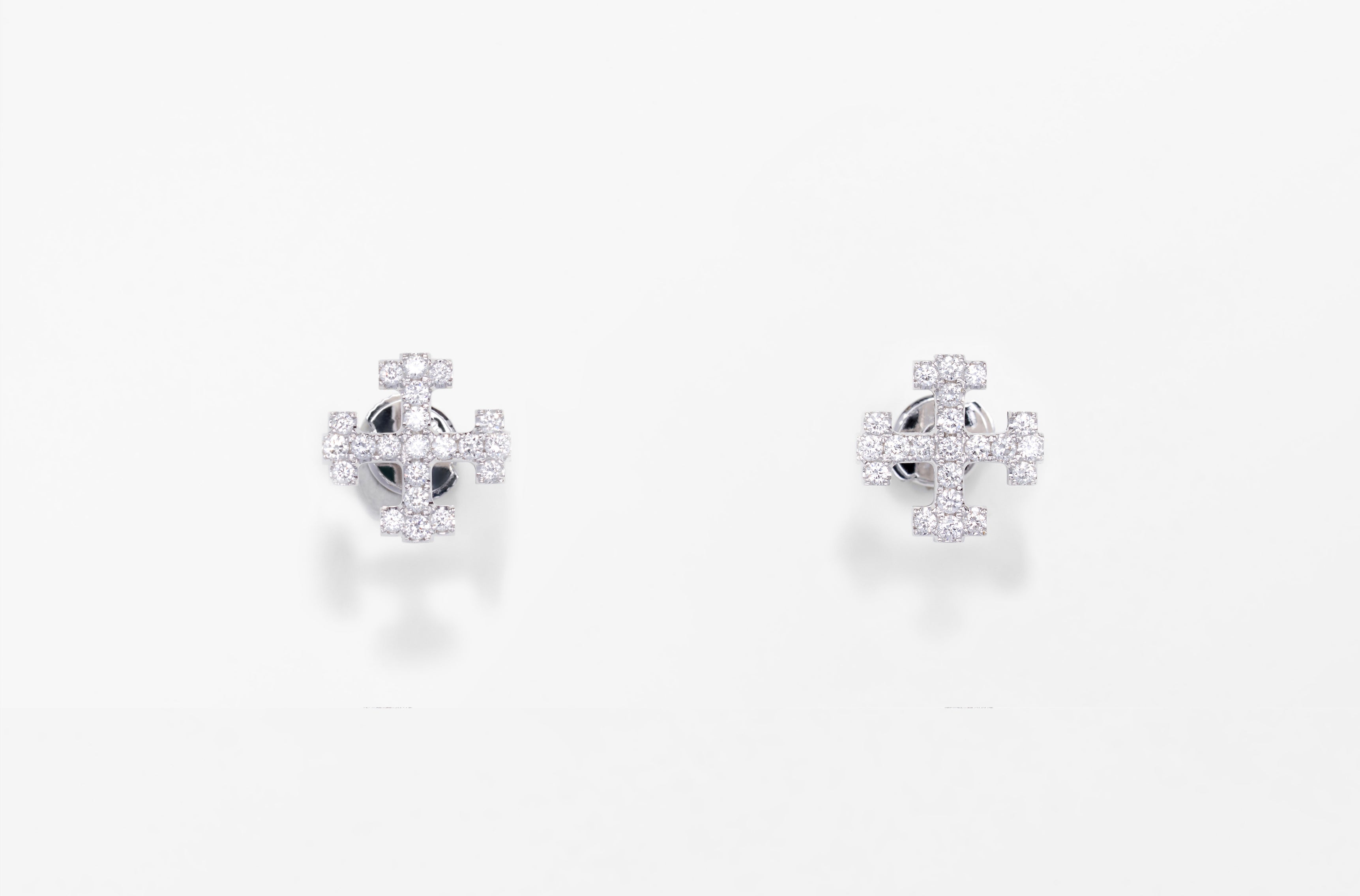 The Cross collection: Fearless and bold. Inspired by a variant form of the Chinese character 丰, it encompasses the essence of protection and unwavering faith. Crafted in gold with diamond accents, it empowers dreamers to be bold.